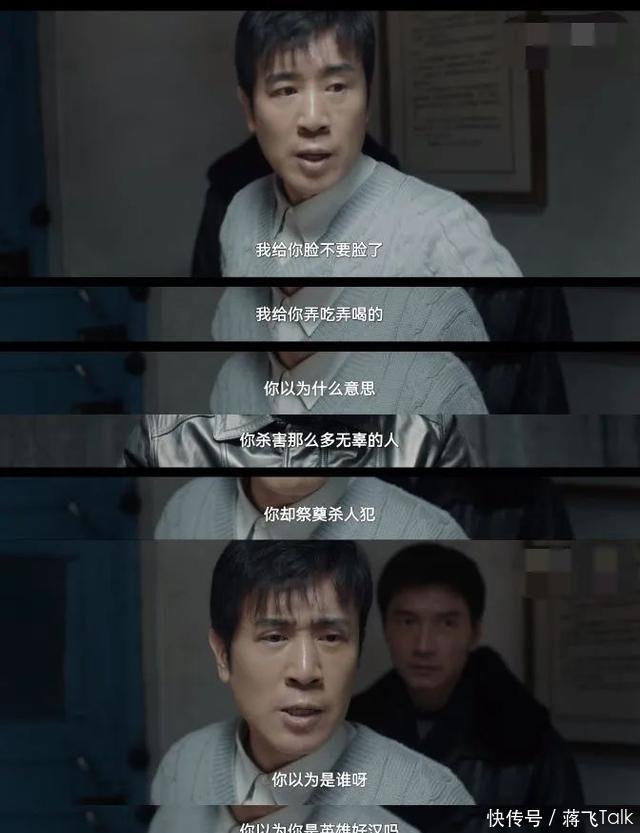 后来审讯嫌疑犯时,他看到嫌疑犯竟然用酒祭奠同伙,他一下就愤怒了,对着嫌疑犯破口大骂。 这一段戏,于和伟饰演出了“新兵蛋子”的莽撞和冲动。